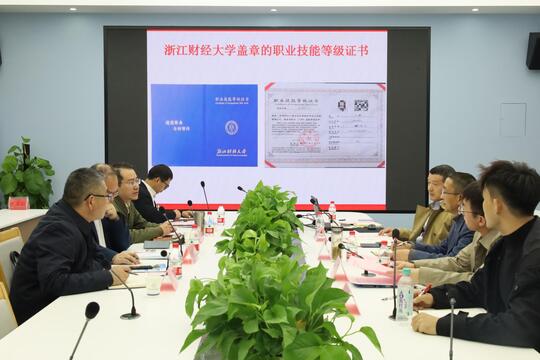 11月29日下午,舟山市技能人才评价管理服务中心副主任唐许达、舟山技师学院副院长韩拥军一行四人来我校职业技能等级认定中心交流调研,浙江财经大学工商管理学院党委书记黄卫华、认定中心执行主任吴道友教授等参加交流。此次交流旨在了解我校职业技能等级认定工作的推进实施情况,探讨如何更好地培养职业技能人才,以满足社会对技能人才的需求。