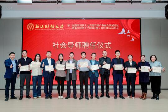 11月30日下午,我院在第二届数智时代人力资源管理产教融合发展论坛暨浙江财经大学HR经理人俱乐部2024年会上,举行了社会导师聘任仪式。来自省内各高校、政府机关、企事业单位及人力资源服务机构的200余名专业人士参加本次论坛。