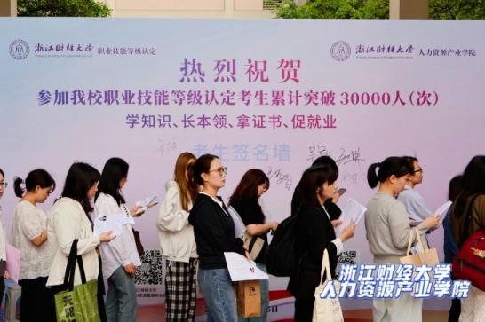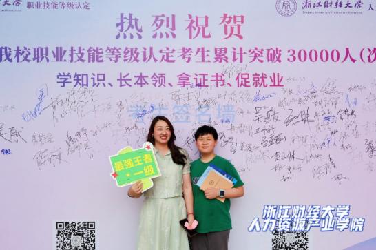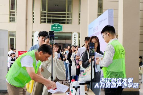 浙江财经大学人力资源产业学院融媒体中心还邀请了专业摄影师驻场,为考生定制专属赴考影像。在一楼大厅精心搭建的打卡场景前,考生们自信的笑容被镜头定格,拍摄结束仅需片刻,高清打卡照片便能一键下载,成为他们逐梦路上的珍贵纪念。
