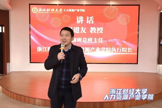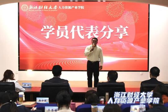 浙江财经大学党委委员、副校长、我院院长董进才教授发表讲话。董进才教授代表学校对远道而来的全体研修班学员致以诚挚欢迎,向为本次研修班辛勤付出的授课专家、组织团队以及给予大力支持的合作单位,表示最衷心的感谢!同时高度肯定了学员们的学习热忱与专业追求,并重申学院赋能行业人才发展的初心,寄语全体学员以专业赋能实践,在人力资源领域持续深耕、再创佳绩。
