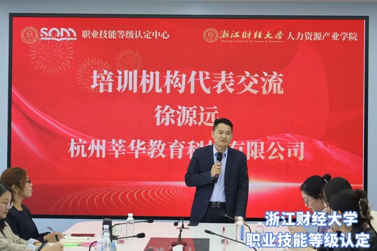 活动邀请了杭州莘华教育科技有限公司徐源远校长分享交流。徐校长高度认可我校的认定服务工作并表达诚挚谢意,明确将以此次交流为新起点,持续优化培训服务,更好地回馈广大学员。