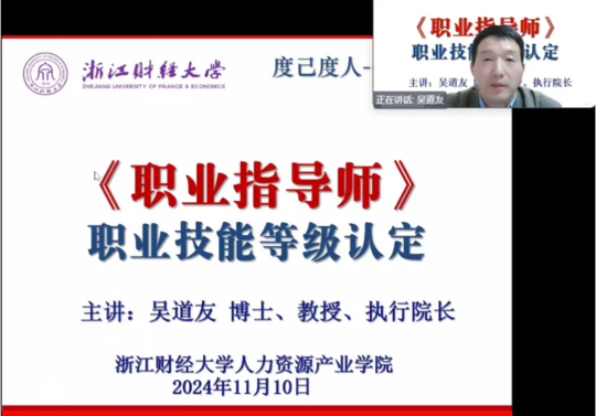 吴教授以《职业指导师》职业技能等级认定介绍为主题,展开了一场极具深度与价值的分享活动。