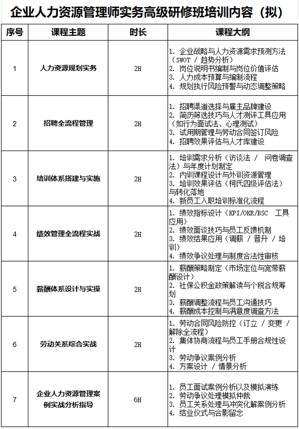 企业人力资源管理师实务高级研修班