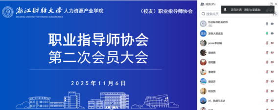 11月6日晚,(校友)职业指导师协会第二次会员大会顺利召开。人力资源产业学院执行院长、职业指导师协会理事长吴道友教授、协会会长杨文超博士以及40余名会员线上参加会议。本次会议由杨文超会长主持。