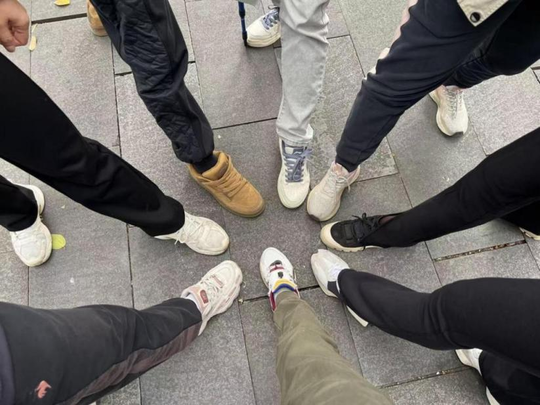 我们这群被同一段山路、同一片秋色联结的伙伴,在西湖全景的见证下,围成一圈。一双双徒步鞋靠在一起,记录了我们共同走过的每一步路,共同看过的每一寸风景。